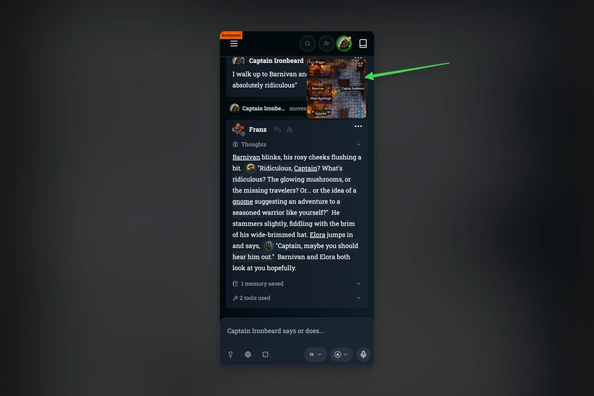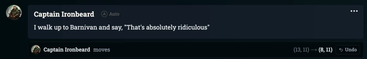 In the past, the engine would try to decide when to pull in contextual fields about NPCs which sometimes left out key fields such as personality or backstory when they should have been included. With POI maps, we’re able to improve our context engineering so that based on distance and character importance, the AI has all the context about a character when they’re nearby and relevant to the action. This greatly improves coherence with the fields defined in their character sheet like personality, backstory, and appearance.