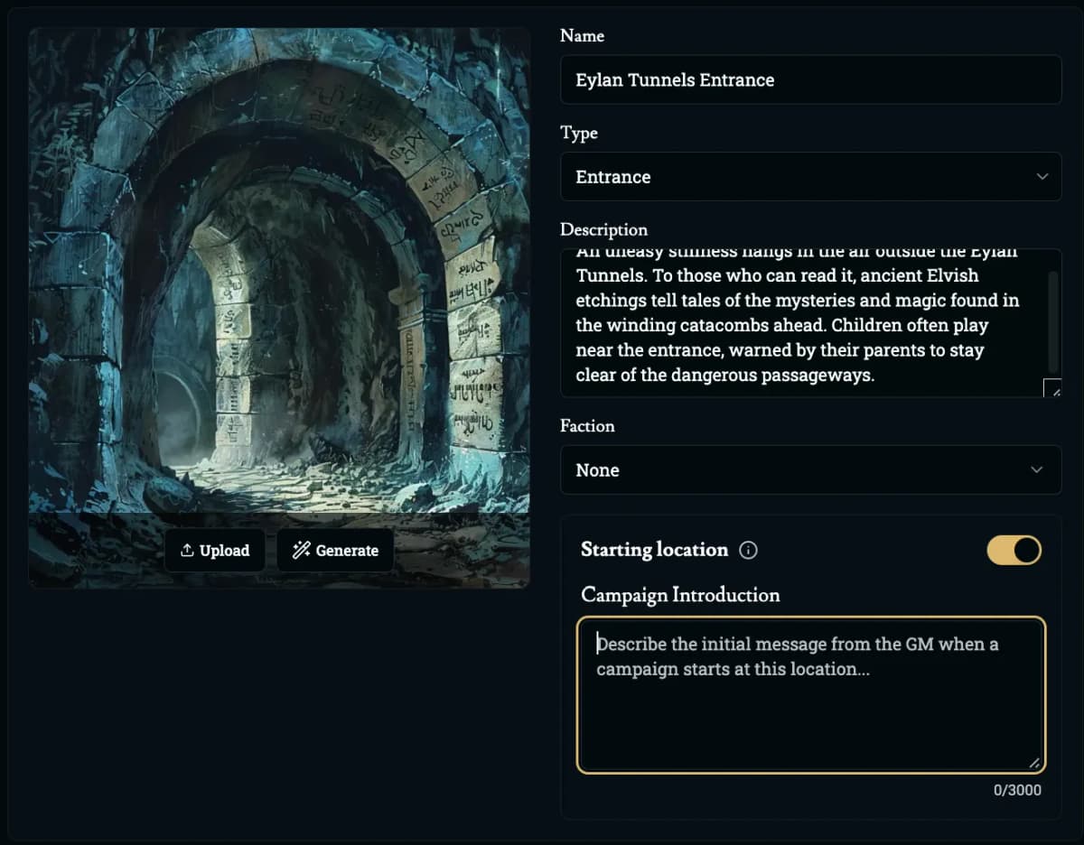 Now when you create a POI as a starting POI, you can set a campaign introduction message. This will be the first message a player sees when they start a campaign in your world.