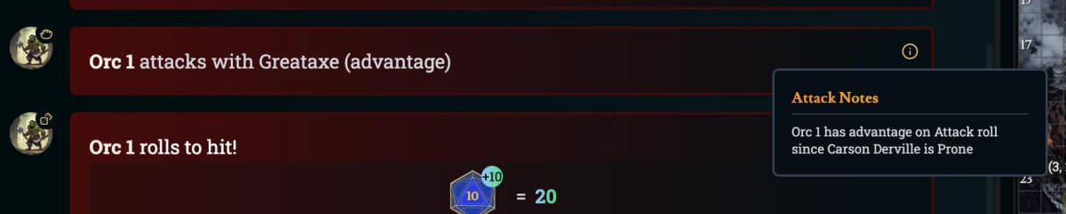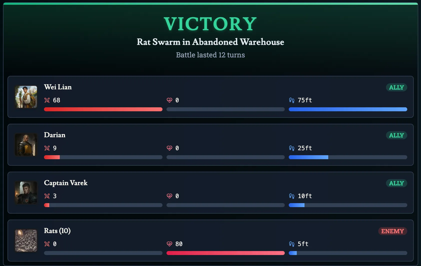 First things first, thank you all so much for your patience on this update. Building an AI game engine that understands 5e combat is no easy task. In fact, this is our third try! This was a really big update so we had to do it in chunks over the months, but we’ve finally got something cohesive for ya! Some of you may recognize some of these updates already, because we’ve actually been quietly shipping these features to production. If you’ve turned on “Turn based combat” in your campaign, you’ll probably have used some of these features already. Even then, I still encourage you to give this update a read - there’s a lot of stuff we packed in!