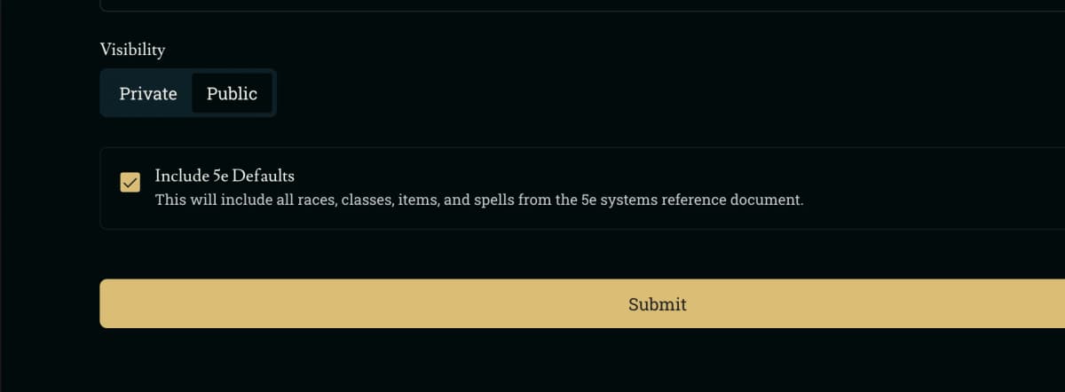 Homebrew is going to continue to be a big focus for us! Now when you go to a base world, you'll find new tabs where you can edit locations, characters, races, and classes! Spells and Items will be coming soon :)