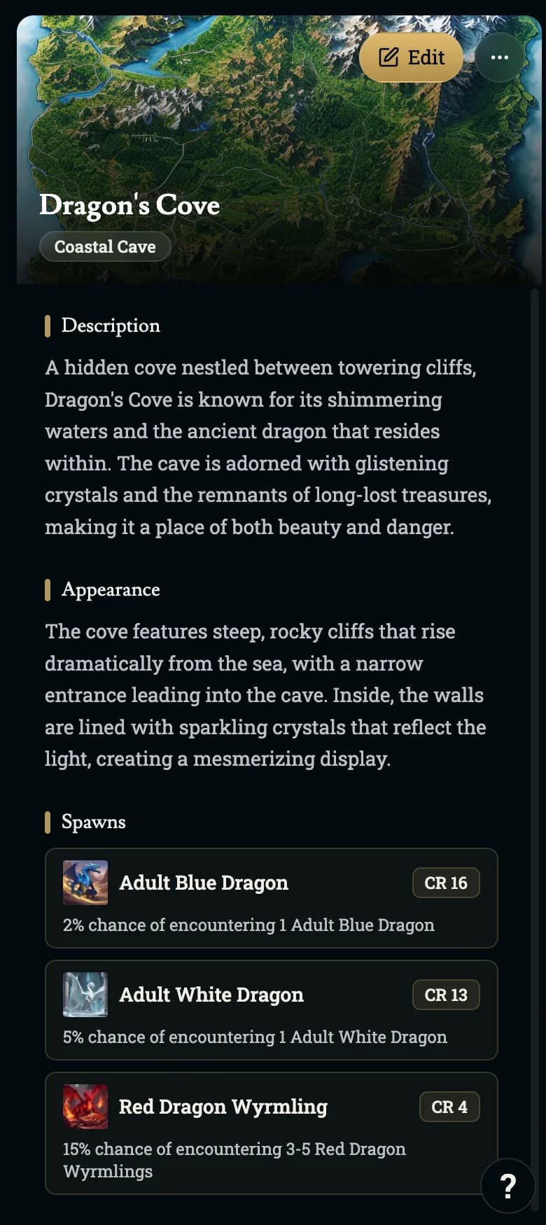 Areas are now more for travel and an organization to keep your POIs cohesive. You can add monsters with a spawn rate to areas, which are used to give travel a sense of danger & make the area feel more immersive as you can spawn monsters/creatures that are fitting of the area.