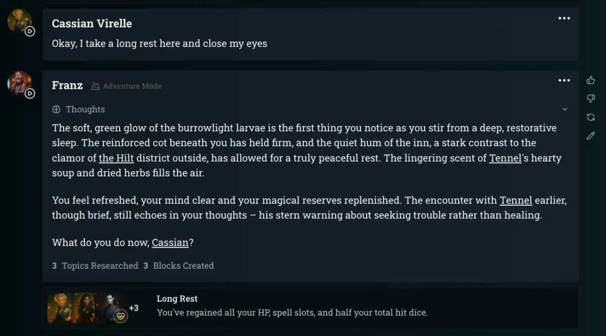 Fixed an issue where spells in combat were consuming spell slots before use. Spell slot outcomes now also show out of combat in narration and will be also be consumed if talking about casting a spell and not directly using the cast spell button.