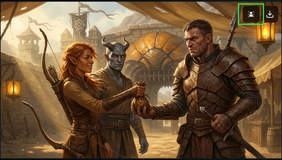 It’s really good at bringing over character and location details from reference images, but it has a tendency to look a little more video-game / realistic with its depth of field. Here’s an example of Riven Thatchmere from Odrun Fell in Crackline Alley.