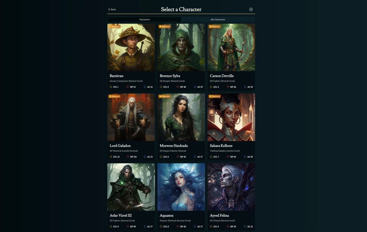 This one has been LONG overdue! We’ve updated our character select flow to allow you to play as any character in the world. World builders can now mark characters as featured to indicate recommended player characters for their worlds.