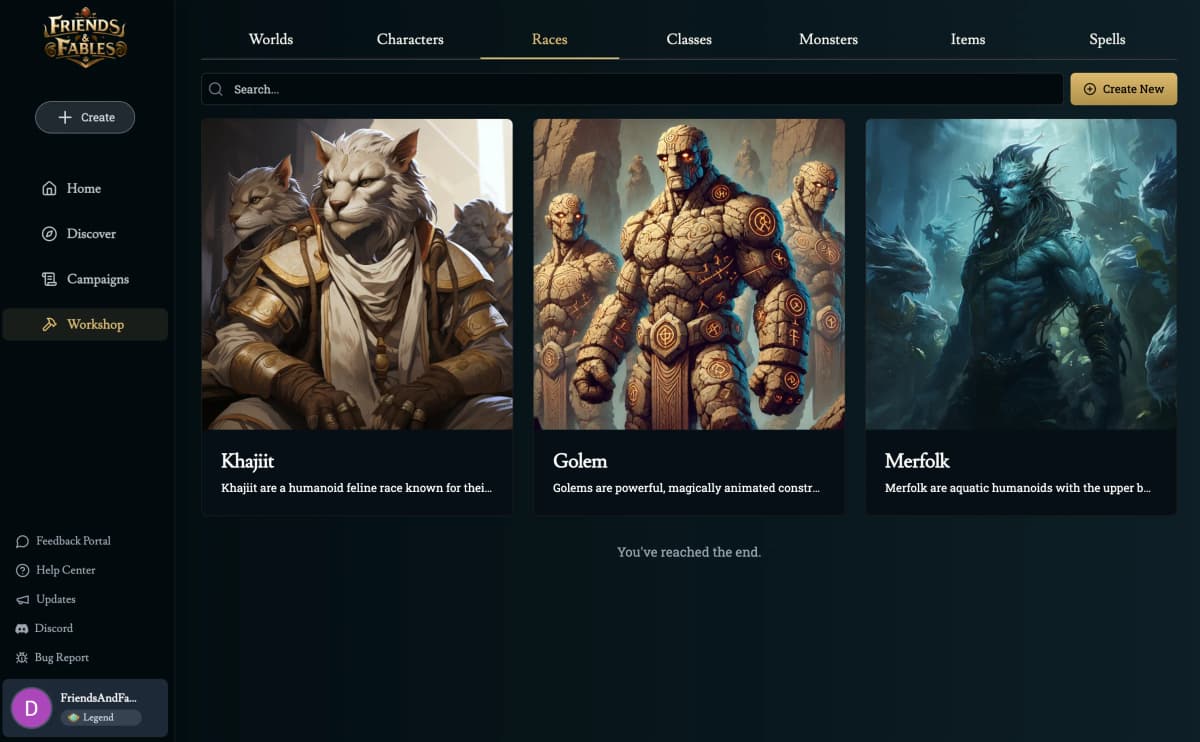 You can create your favourite characters in the workshop to select and play across campaigns. In future updates, you will be able to publish your characters and add them to worlds you’re building.
